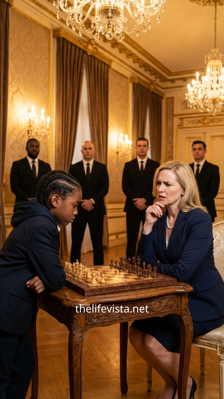 The marble floor echoed beneath his sneakers as he stepped inside, clutching his worn chessboard like it was the only steady thing in the room. Laughter drifted through the vast living room—not the kind born from joy, but the polished laughter of people who believed they owned the world. They didn’t know his name. They didn’t know where he came from. To them, he was just the maid’s son.