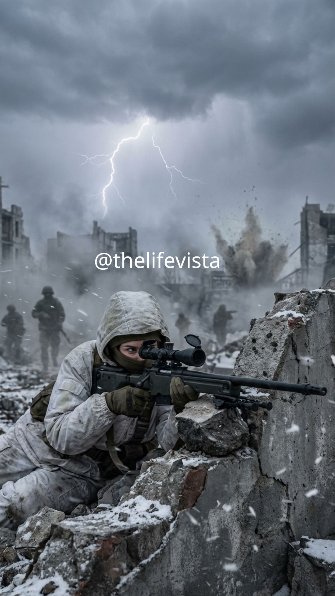 In the frozen city of Velnor, a sniper picked off soldiers one by one, vanishing without a trace each time. No one saw her, no footprints in the snow—just dead men and a silent, watching presence. She knew the city better than anyone, and the soldiers who came to find her never left the same.