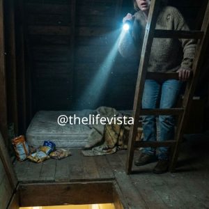 I stepped out onto the porch before my courage could drain away. The night air was thick, smelling of wet grass and smoke. The string lights buzzed overhead, cheerful and wrong.