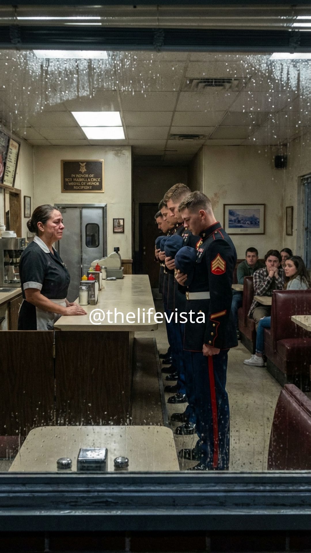 As word of the gathering slowly spread through local veteran networks and beyond, Sophia Bennett received occasional messages and visits from others who had served alongside her or benefited from her care during that deployment. These connections helped bridge the gap between her past identity as “Doc” and her present life as a waitress who valued the unassuming routine of the diner. She began to share small pieces of her story on her own terms during late-night conversations with Ruth after closing time, finding that speaking about certain memories no longer felt quite as heavy when met with genuine listening rather than awkward discomfort. The roadside diner, once just a temporary stopping place on her journey back to civilian life, gradually transformed into a space where past and present could coexist more peacefully, allowing her to integrate the different chapters of her experiences without feeling the need to hide any part of who she had become. In time, she even started mentoring a young veteran who had taken a part-time job washing dishes, passing along the same lessons of focus and resilience that had kept her steady when the world around her was falling apart.