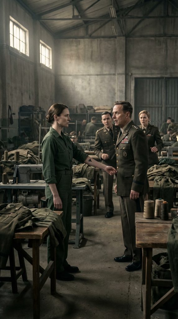 By the time the old sewing machine began its steady, almost hypnotic rhythm that afternoon, Clara Whitmore had already decided she would keep her head down and make it through the day without drawing attention to herself, which, in her experience, was less a choice and more a survival habit etched so deeply into her that it now felt like instinct. The repair room sat tucked behind the main logistics hangar, half-lit by a narrow row of high windows that never quite let in enough sunlight to banish the shadows. It was one of the few places on base where the noise softened into something bearable, where the chaos of war was reduced to manageable problems that could be held in the hands and fixed with patience. Torn sleeves, burned cuffs, and frayed seams became the language of the room, each piece a quiet request for restoration. Outside, engines roared and boots struck concrete in sharp cadence, but inside, everything narrowed to thread, fabric, and the steady discipline of repair.