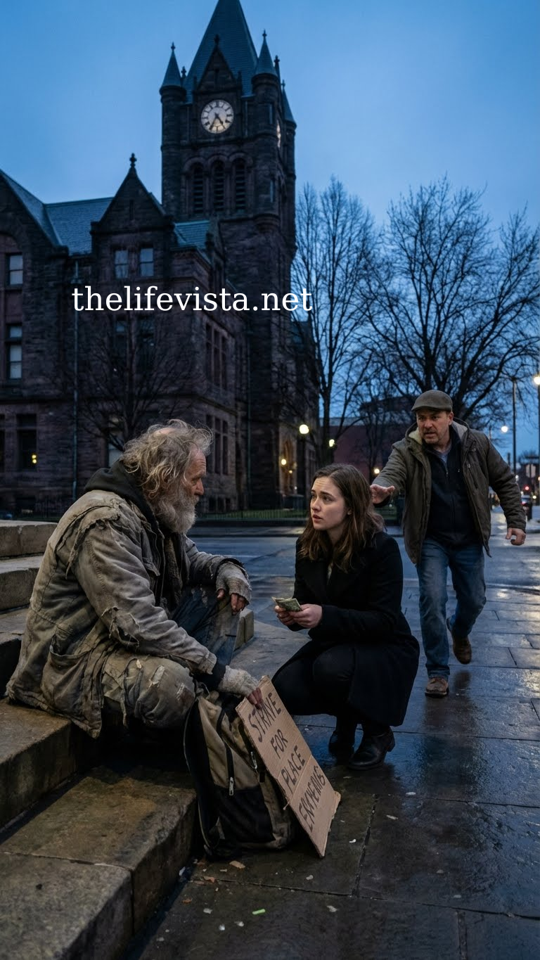 After my husband passed away three years ago, I forced myself to resume a routine before grief completely consumed me. I found a new job as a receptionist at a dental clinic across town, and every morning I would walk past the old library where a homeless elderly man named Ethan Brooks sat on the same bench, carrying a worn backpack and a cardboard sign that simply read, “I’m still trying.” Something about that message touched me. So every day, without fail, I would bend down, leave some folded bills beside him, we would exchange a small smile, and then I would continue on to the bus stop.