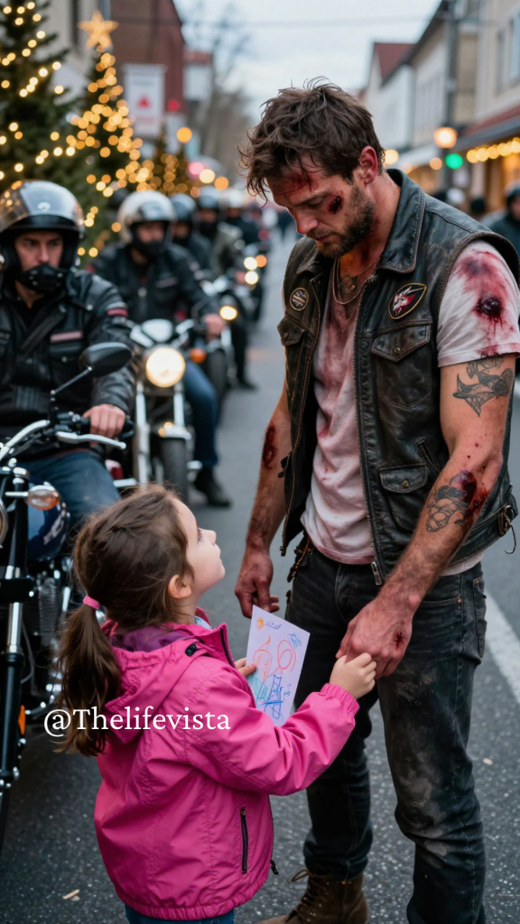 Evan didn’t answer. He just stared at the drawing. He’d taken bullets before. Fights gone wrong, debts gone bad, but never for someone who drew him in purple crayon and called him theirs.” Outside, the chrome shimmerred in the afternoon sun. Riders stood in small groups, leaning against bikes, arms crossed.