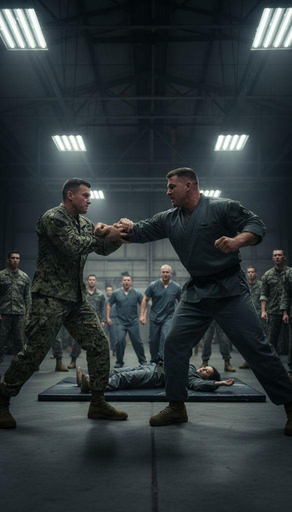Claire capped her bottle and faced them. “I’m not here to socialize,” she replied simply. Logan chuckled. “You hear that, Mason? She thinks she’s better than us.” Mason stepped closer again. “You’re going to learn respect one way or another.” Before anything escalated, Master Chief Samuel appeared again, announcing a sparring session. Everyone rushed toward the mats inside the training hanger, adrenaline already rising.