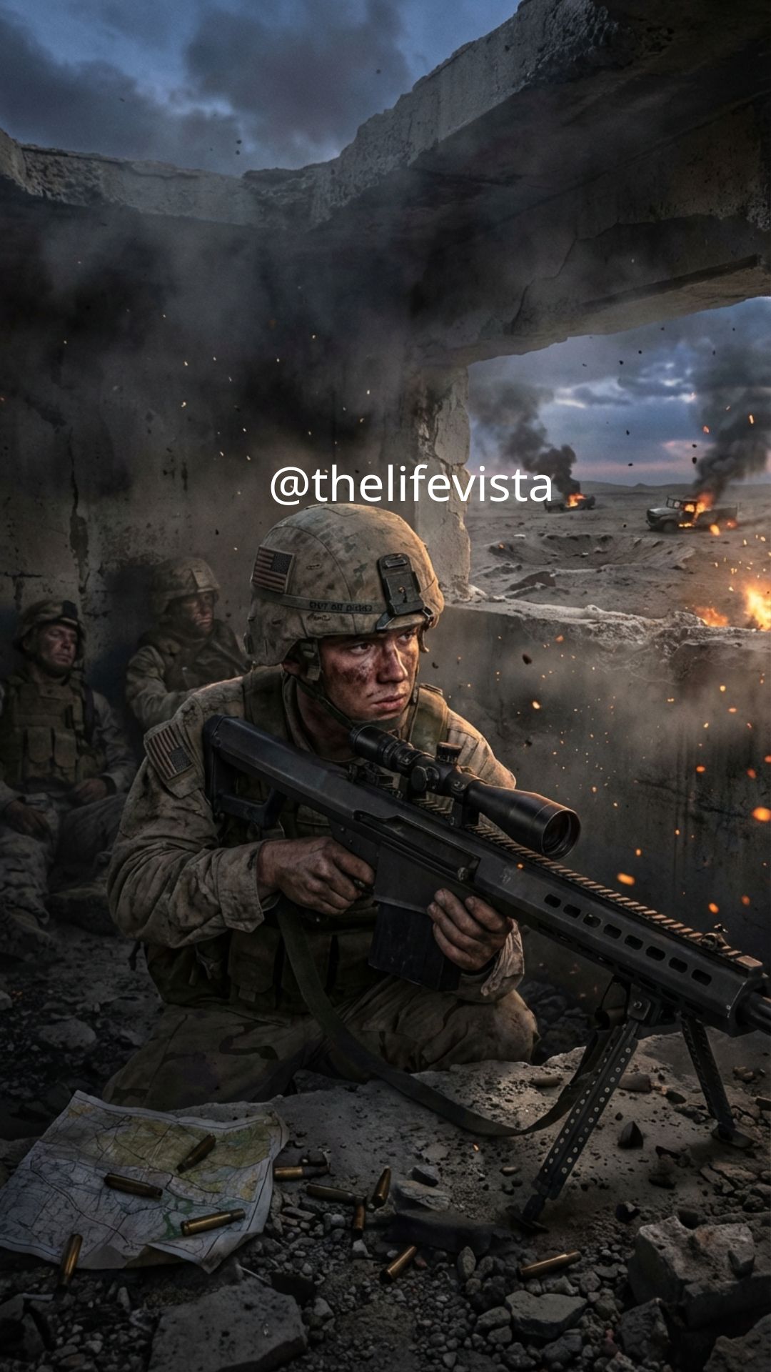 He adjusted the bipod legs with minute corrections that were invisible to observers, ensuring the rifle was perfectly stable against the concrete surface while accounting for the slight vibrations that still reached them from distant explosions. His scope, a high magnification optic designed for extreme precision shooting and worth more than most soldiers annual salaries, required careful calibration for the unprecedented distance he was attempting.