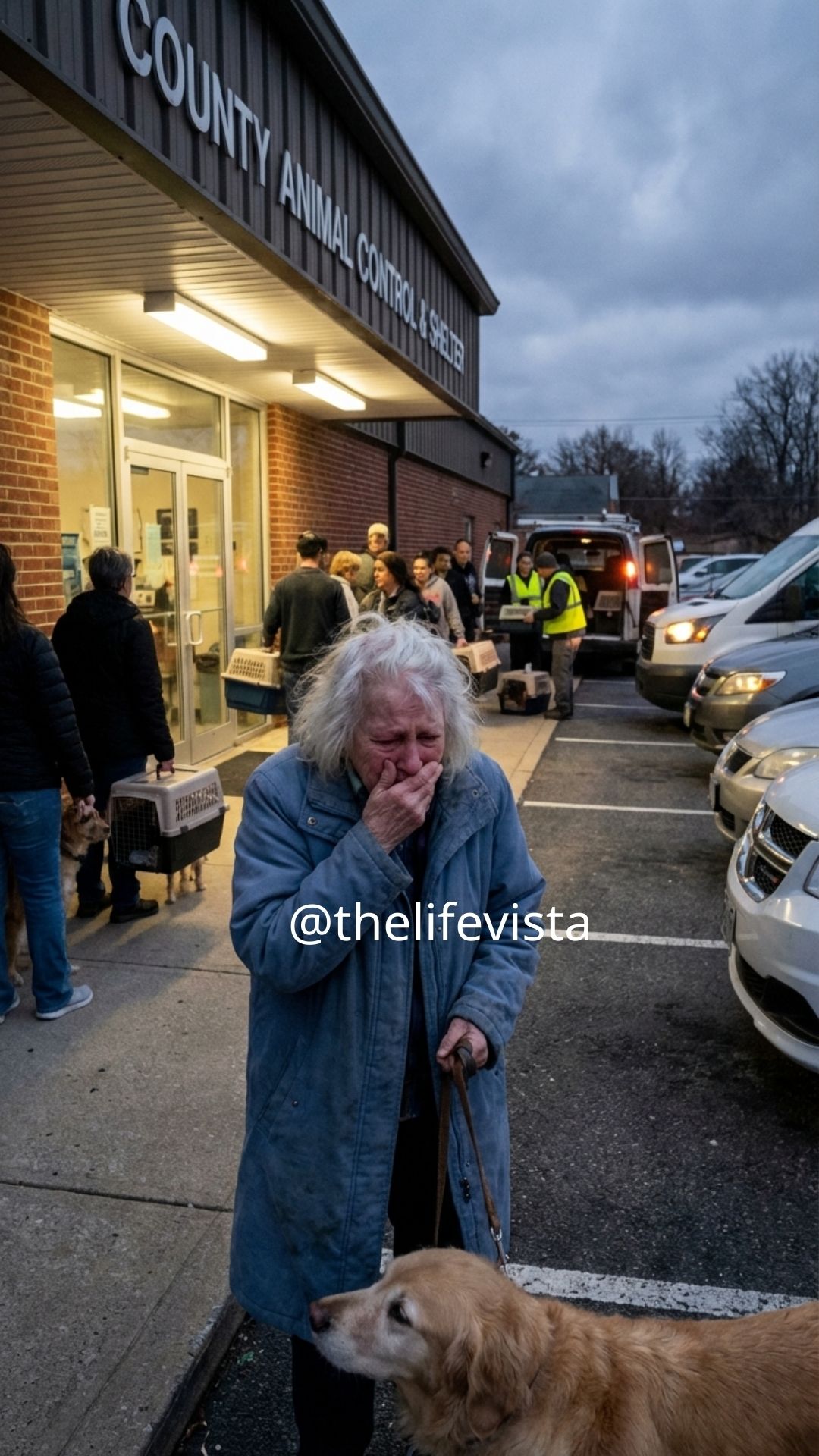 The animal shelter’s glass entrance stood fifty feet away, gleaming under the late afternoon sun like a verdict waiting to be delivered. Charlie pressed his aging body against her leg, his golden fur now pale and thinning with time, his hips stiff from arthritis that had slowly crept into his bones over the years. Thirteen years together meant thirteen winters, thirteen birthdays, and thirteen quiet mornings when the world outside felt too big and the apartment felt just warm enough because someone else was breathing beside her.