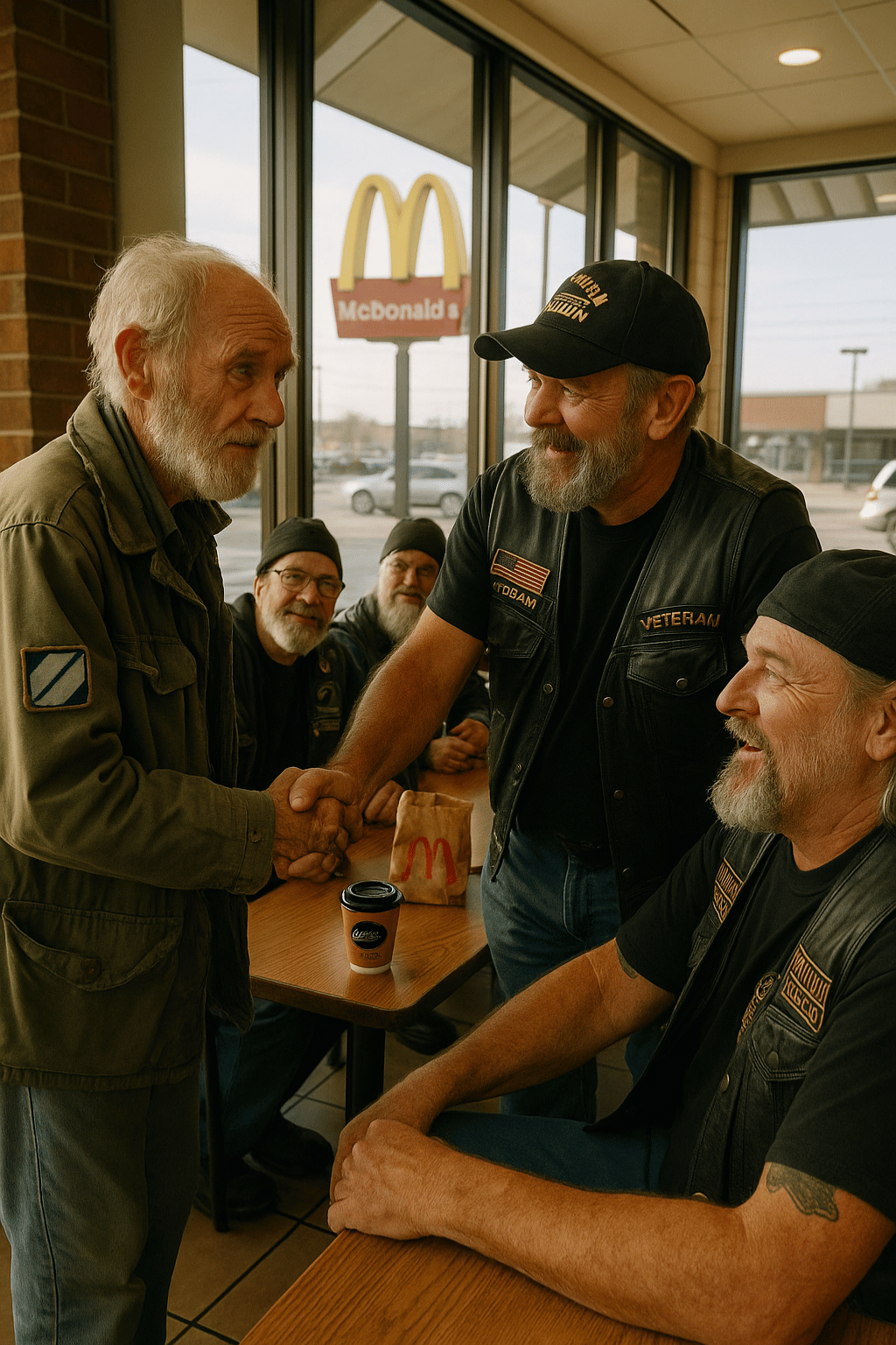 Outside the McDonald’s, a dozen chrome motorcycles gleamed like sleeping beasts. Inside, the smell of grease, coffee, and fried hash browns wrapped around them like a familiar blanket.