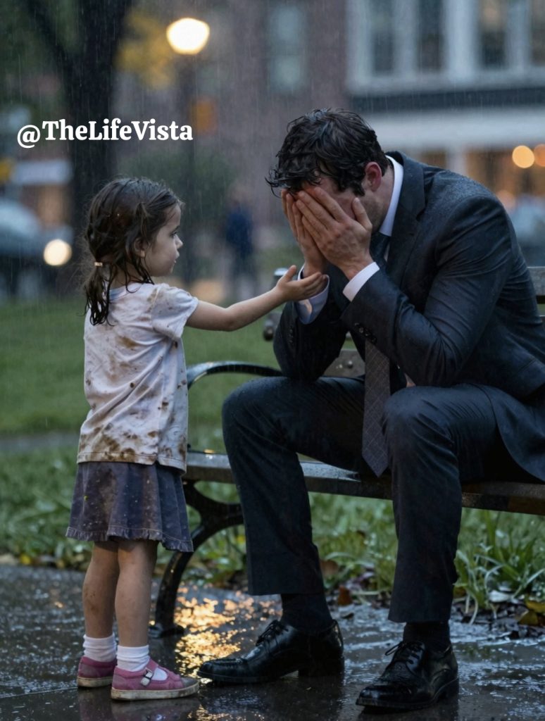 Lucía sat on the bench beside him like it was the most natural thing in the world to sit beside a grown man crying in the rain. “Sometimes I sleep under a bridge,” she said. “Sometimes I sleep here in the park. It depends where it’s less ugly.”