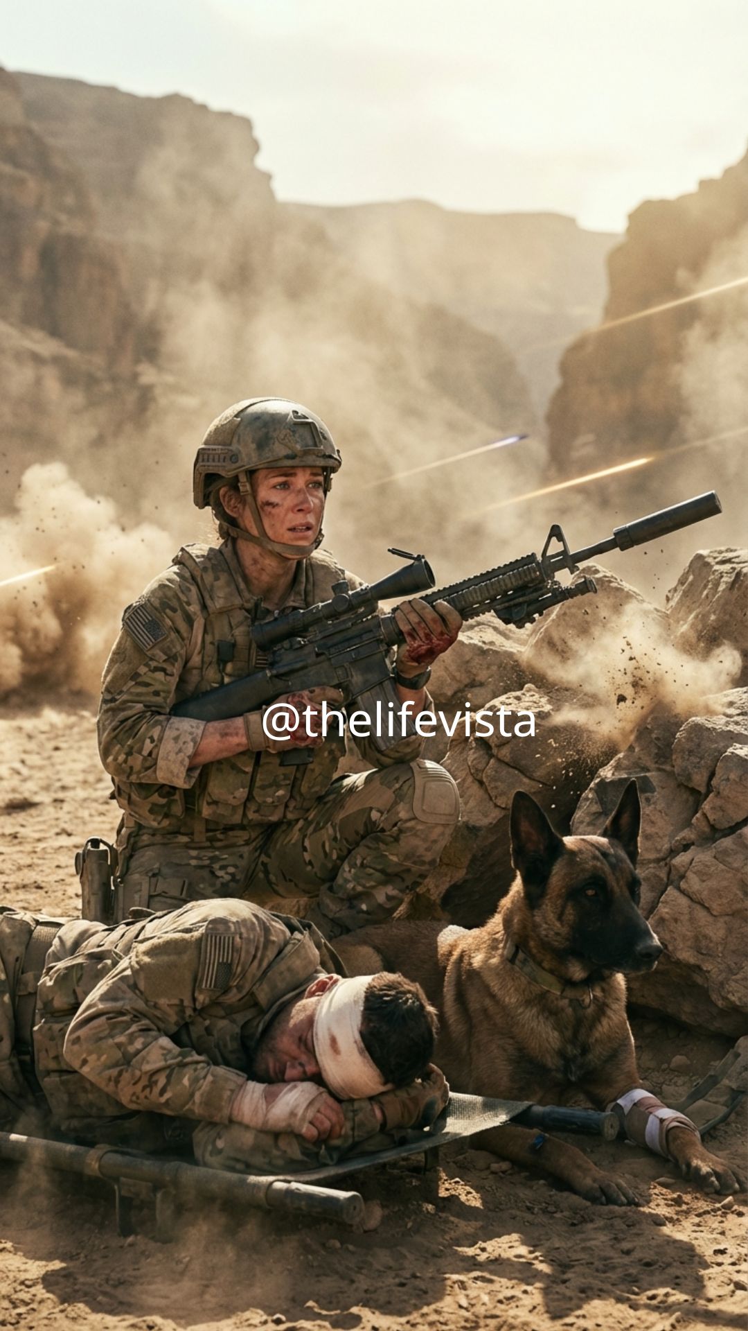 I grabbed a tourniquet and threw it around Rex’s leg, pulling it tight. The dog whimpered but didn’t bite me. He just looked at me with these big trusting brown eyes, trusting me to fix it. “We’re pinned!” Daniel Brooks shouted over the radio, his voice crackling in my earpiece. “We have an enemy sniper high up on the ridge at two o’clock. We can’t move! Every time we peek, he’s got us dialed in!”