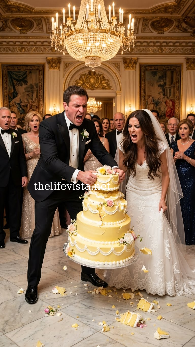 The sound was cataclysmic. The seven-tier tower of cake teetered for a split second before collapsing onto the marble floor. Porcelain shattered. Heavy layers of sponge and cream exploded outward, splattering the front row of guests. Gold leaf and white frosting coated my pristine dress and David’s expensive tuxedo.