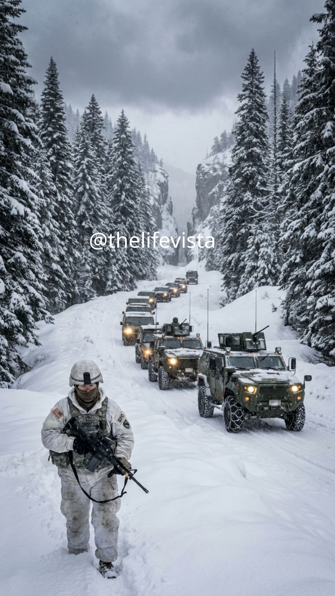 The wind came down from the north, relentless and unforgiving, like an old grudge that had no need for apology. It carried with it not just cold, but pressure—an uncomfortable chill that invaded every gap in a person’s clothing. The mountain range was skilled at channeling this wind through its narrow gorges and ravines, sending it down to the road below with precision, making everything more unbearable. Eight vehicles moved in a single file on a logging road, originally built for timber trucks, now repurposed as a military resupply route. The convoy crept along the road at an agonizingly slow pace, the ice making the journey treacherous. In fact, a single pedestrian could have moved faster.