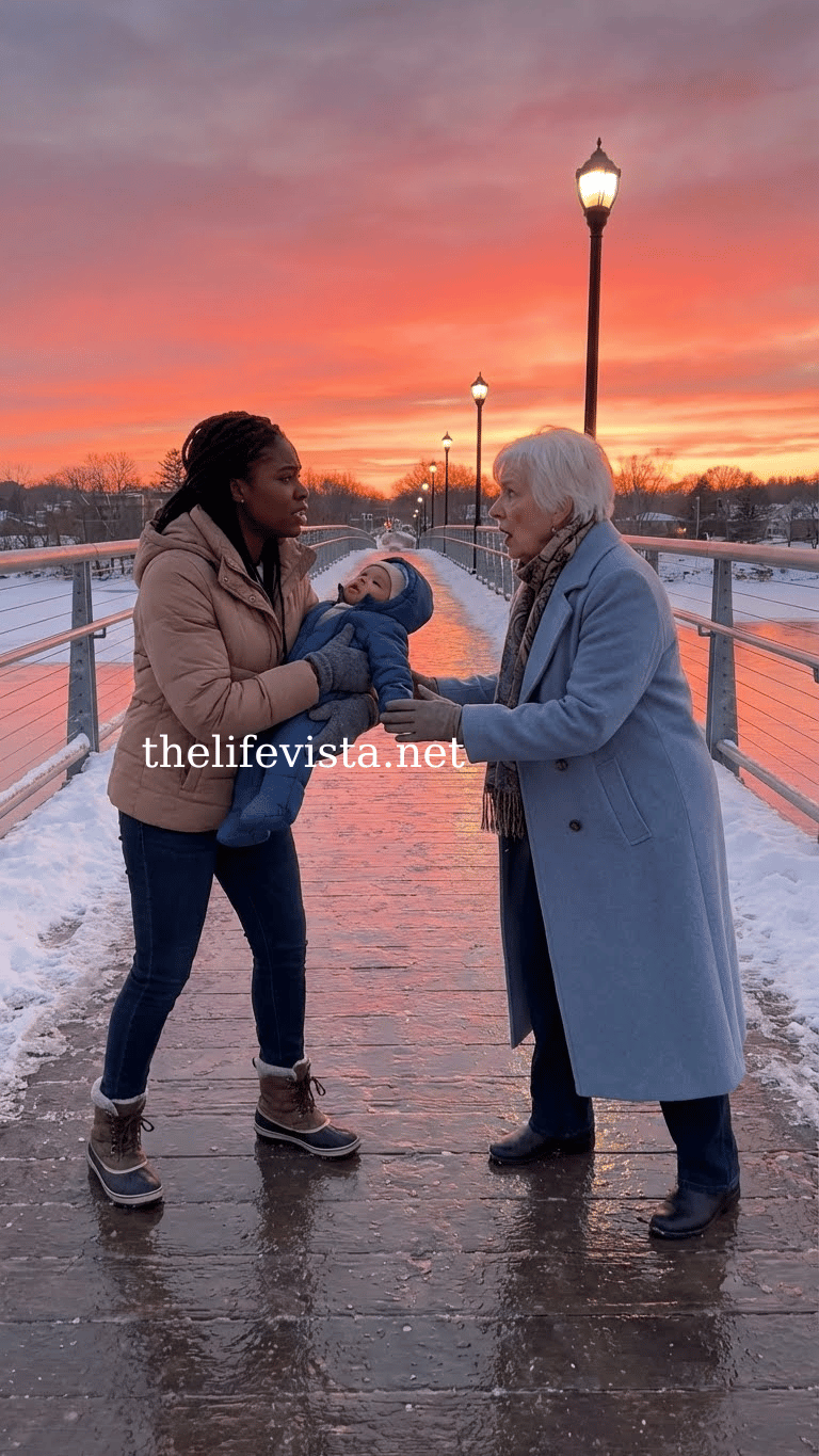 A young Black woman stood at the railing, cradling a baby wrapped in a faded blue blanket. Her coat was thin, her shoulders slumped with exhaustion. This was Jada Hayes — a single mom working double shifts just to buy formula. She had only been walking home from a night job when she saw the SUV plunge.