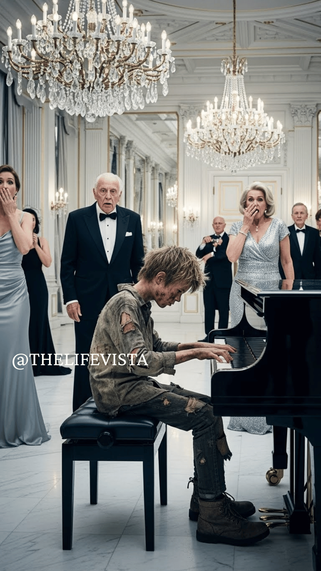 As two security guards escorted a thin, homeless girl toward the exit of the lavish charity gala, she suddenly pointed at the piano and pleaded, “Please—let me play it for just one plate of food!”
