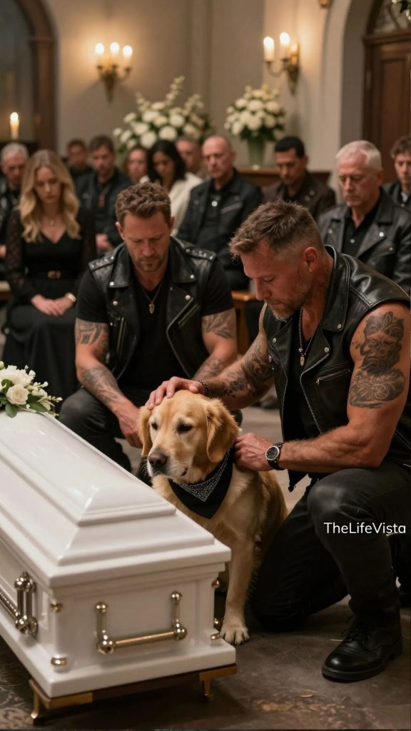 At the front of the room rested a small, plain wooden casket, its simplicity almost jarring when compared to the weight of loss it contained. Beside it lay a dog whose sorrow seemed to radiate through the stillness. The dog’s name was Atlas, and he had not eaten since the boy had d!ed, his ribs rising and falling slowly as he rested his chin on the edge of the casket, letting out soft, aching whines that sounded more like grief than sound.