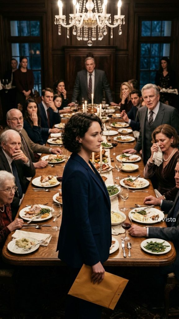 My father didn’t slam the table. He simply stood up in the middle of Thanksgiving dinner, held up a white envelope in front of thirty relatives, and calmly called me a thief. My mother began crying on cue, as if the scene had been rehearsed. What no one in that room knew… was that I had brought my own envelope. It was thicker, heavier—and it was about to destroy every lie they had built their lives on.
