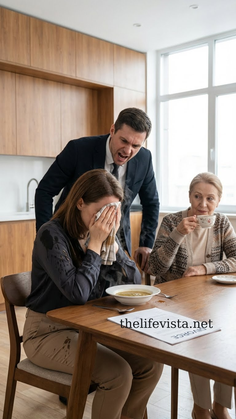 I almost laughed. “Distant? Ryan, you poured soup on me in front of your family. That’s not distance. That’s degradation.”