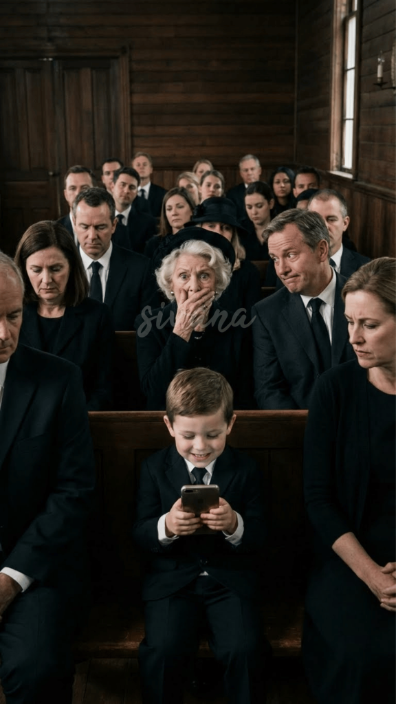 At my husband’s funeral, his mother said, “At least he died before living with her shame any longer.” Relatives nodded. My eight-year-old son stood up, holding his dad’s phone. “Grandma,” he asked, “should I show everyone what Dad recorded about you last week?” Her face went white.