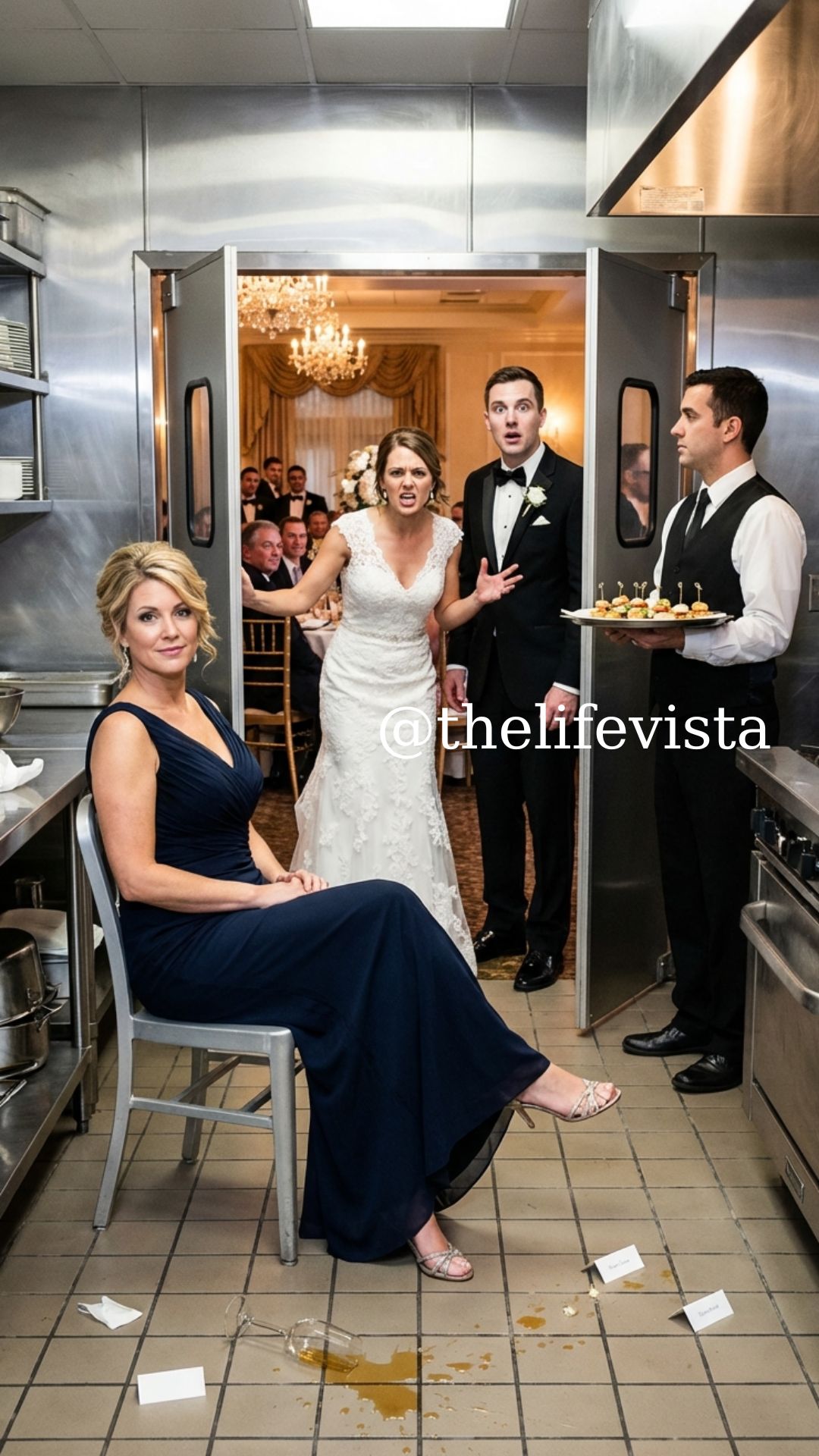 The kitchen went silent. Even the clatter of dishes seemed to pause, as if the staff had suddenly realized the bride and groom were fighting near the ovens.
