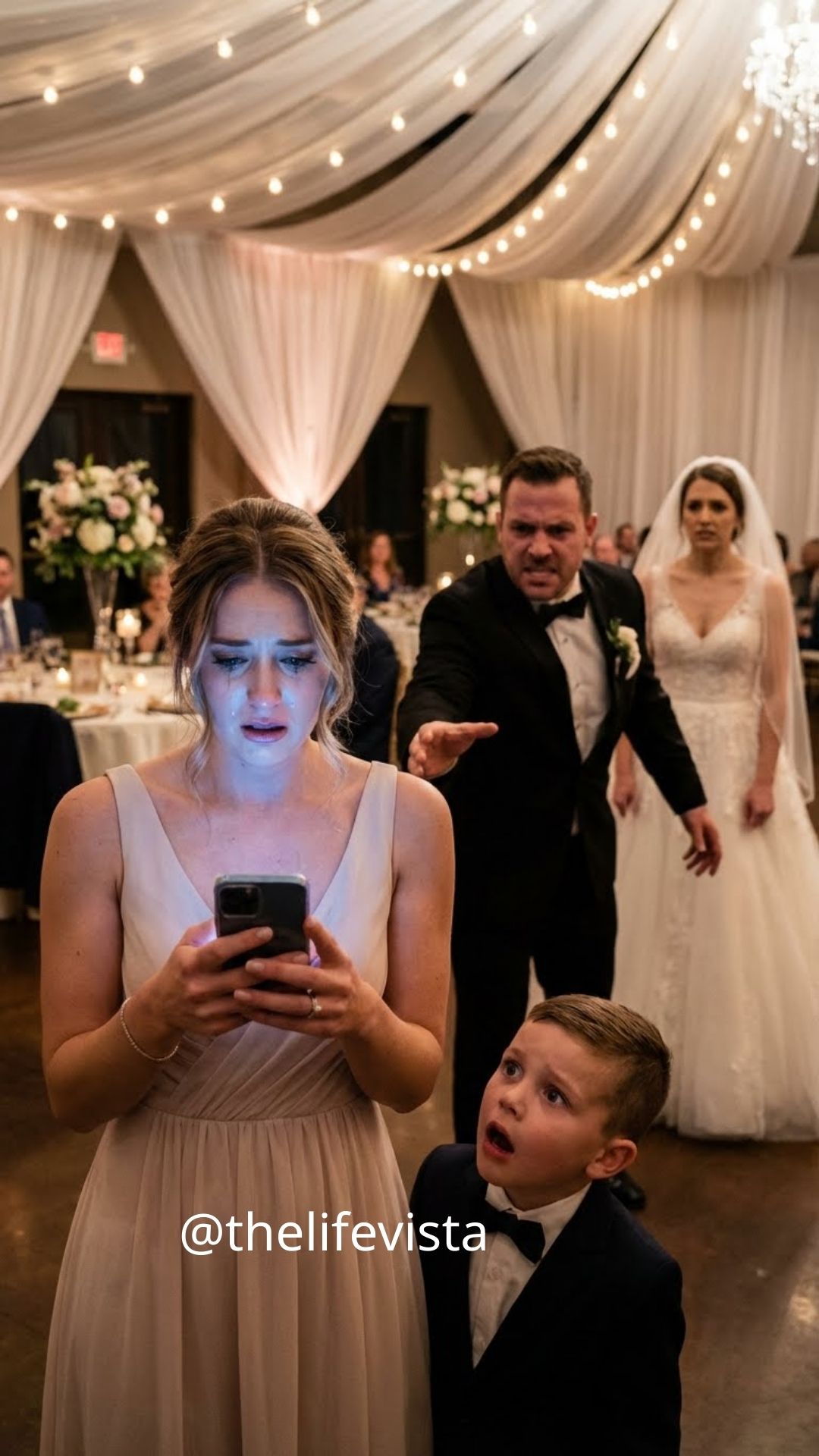 Lucas grabbed for the phone again, panic replacing charm, his mask finally cracking in front of everyone. Security rushed forward at the same moment, alerted by guests shouting. And suddenly, the wedding was no longer a celebration. It was an unraveling.