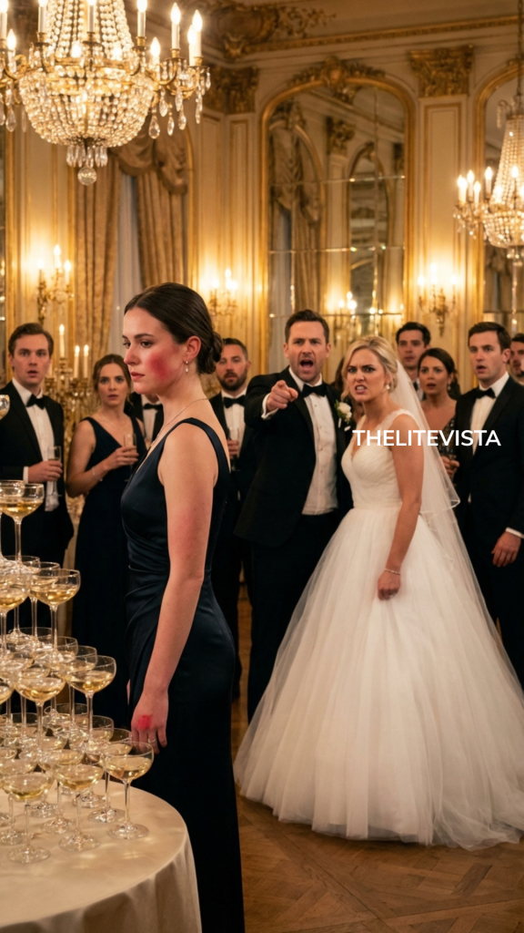 The slap landed so hard it turned my face toward the champagne tower. For a brief second all I saw was light—gold light from the chandeliers, silver light from the mirrored wall behind the bar, the glitter of five hundred glasses raised in celebration. My cheek burned. The skin just below my eye throbbed in a hot, immediate pulse. Somewhere a woman gasped. Somewhere else someone laughed.