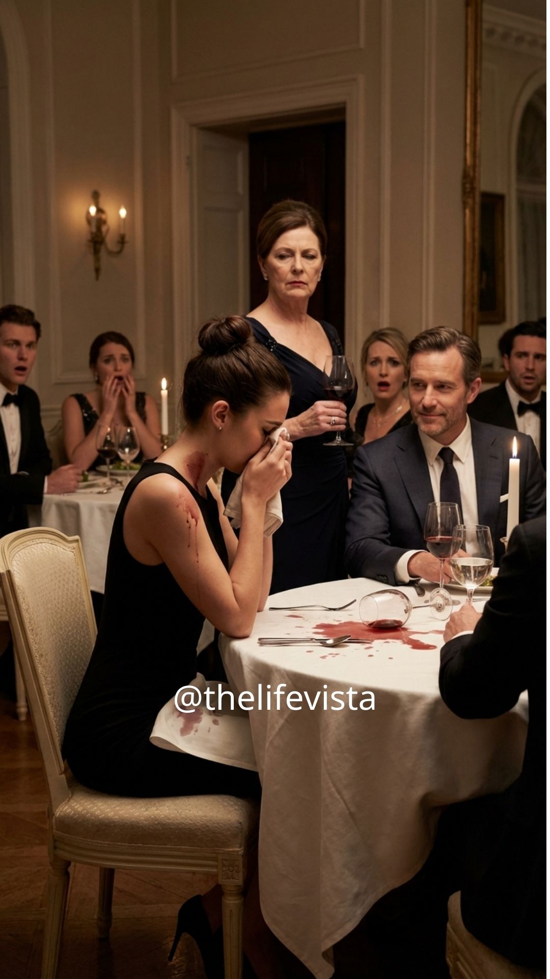 She studied me for less than ten seconds before lifting her glass of red wine and throwing it straight into my face, the liquid cold and acidic against my skin. The room erupted in shocked gasps, but she laughed, loud and satisfied, as though cruelty were her favorite form of entertainment. “Just disinfecting the poor,” she said, as if she’d delivered a clever joke meant to establish hierarchy rather than humor. The wine dripped from my hair onto the tablecloth, staining it deep crimson, spreading slowly like a warning no one wanted to acknowledge.