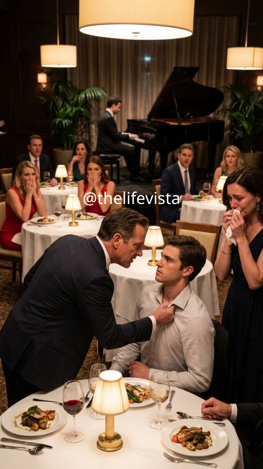 The entire restaurant seemed to inhale at once. Even the pianist in the corner stopped playing, his fingers hovering above the keys as he glanced toward our table. The silence that followed felt thick and heavy, impossible to ignore.