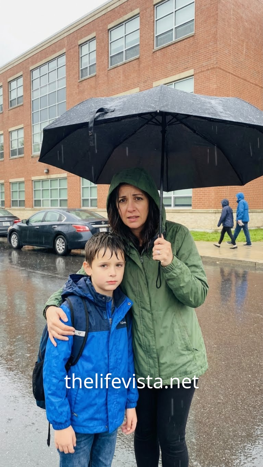 The automated reply tried to brush me off, but I marched back to the school—still drenched—and asked to see the footage in person. The secretary’s face shifted the moment I said, “My son was left to walk.”