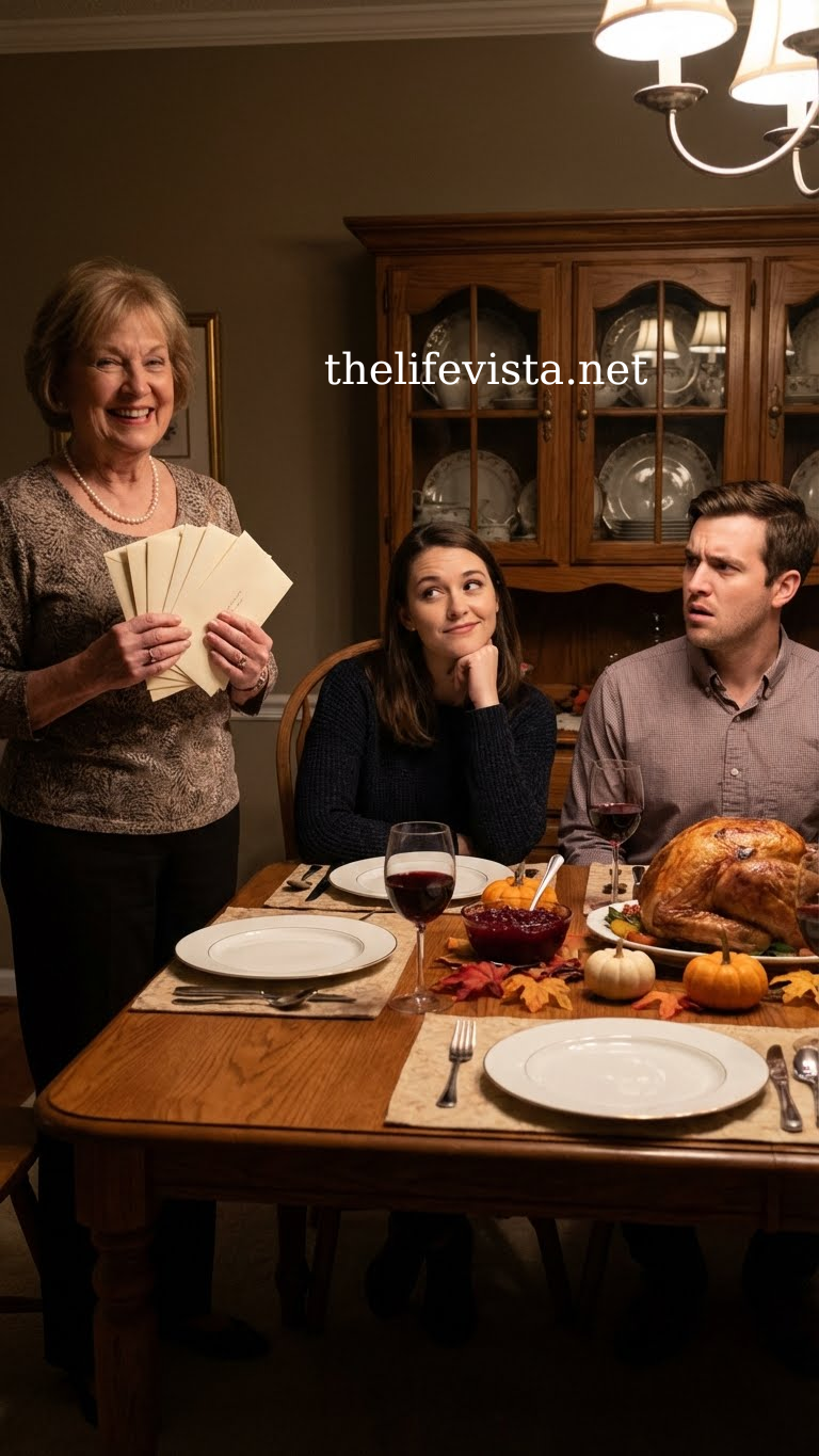 Dinner passed with the usual small jabs, but the real moment came when Mom stood up with a neat stack of envelopes. Her smile was practiced, almost rehearsed.