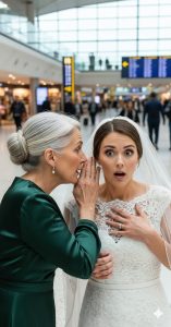 Charlotte sat by the large airport window, clutching a small bouquet to her chest, tears blurring the terminal lights into soft, indistinct stars. The flowers were modest—simple white roses for the wedding ceremony she was supposed to be having tomorrow. Across the polished glass, the reflection of the flight information board crawled slowly: DELAYED. On her lap, her phone lay open to a group chat titled “Wedding,” a relentless stream of messages from her fiancé’s parents, the florist, the event planner, and her maid of honor.