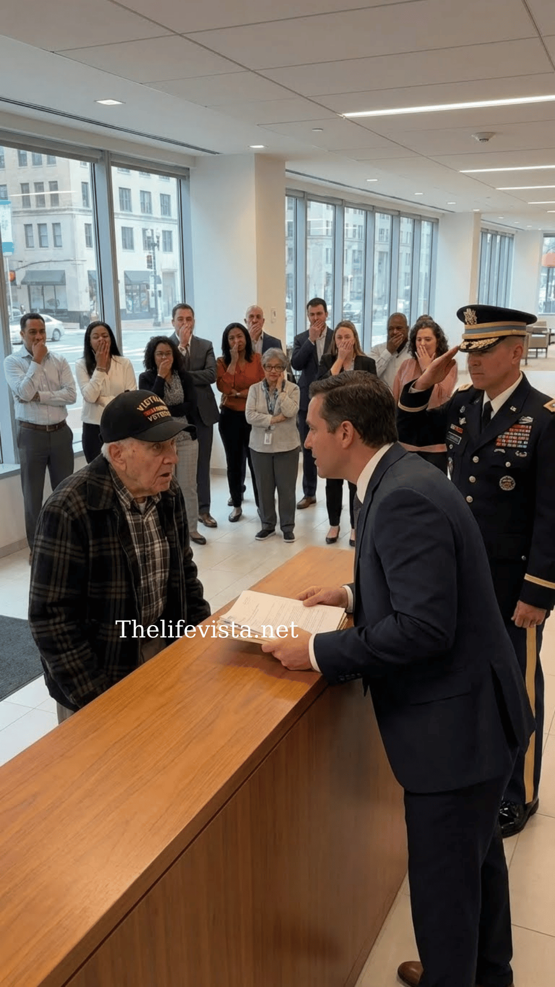 And then, without a single spoken word of command, every military veteran in the room—from a young reservist standing by the ATM to an old Navy corpsman filling out a deposit slip—stood tall and saluted. Even the civilians rose from their seats. Not because they were told to, but because something in the air told them that this is how you honor a man like that.