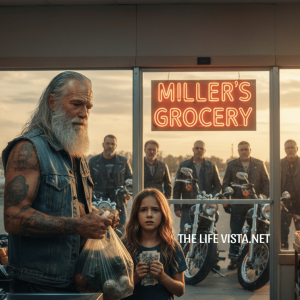 A young girl helps an elderly man buy his groceries — and just a few hours later, hundreds of bikers show up at her home…