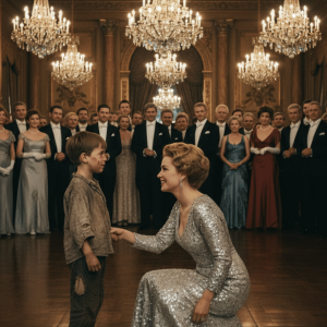 A wealthy woman knelt down to dance with a little boy from a poor background — and what happened afterward stunned the entire room…
