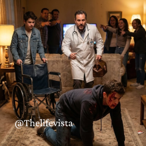 My brother suddenly shoved me, flipping my wheelchair and sending me crashing to the tile floor. ‘Stop faking it for attention,’ he sneered. The whole family burst into laughter as I struggled to catch my breath, and no one bothered to help me up. What they didn’t know… was that my doctor had been standing right behind them, quietly observing everything. He cleared his throat, stepped forward, and said the words that froze the entire room.