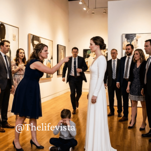 At the gala, my aunt pointed at my son and loudly declared in front of everyone, ‘He’s not qualified to be here. Go wait outside in the lobby!’ My son lowered his head, his eyes starting to fill with tears. I stayed calm, walked over to her, and smiled slightly. ‘Are you sure about that?’ Before she could respond, the manager rushed over and bowed respectfully. ‘Ma’am… the gallery has been set up exactly as per your instructions.’ My aunt’s face instantly turned pale.