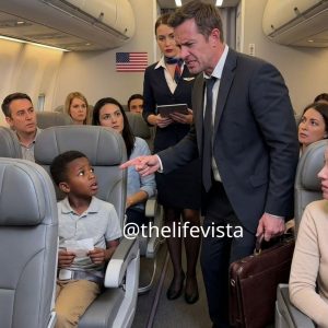 A Black boy boarded the plane only to find his first-class seat taken by a white passenger who sneered that poor Black kids belonged in economy, but what happened next turned the cabin silent — because the truth about who the boy was, and who was really entitled to that seat, came out in a way that left the passenger humiliated and deeply regretful of every word he’d said.