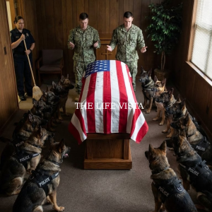 A Navy SEAL barked, “Go home.” But all twelve military dogs refused—choosing instead to stand guard over their fallen handler. The stillness inside the memorial hall felt heavier...
