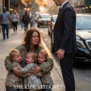 I had just stepped out of my luxury car when I accidentally met the eyes of a beggar woman by the roadside. My heart froze—it was her, the woman I had once loved and lost. She quickly lowered her head and pulled her four twins tightly against her chest. But when they looked up, I was stunned: four tiny faces… identical to mine. “This can’t be… they… they aren’t my children?” I stammered. She trembled and drew back. “Then… whose children are they?” I choked out. She clutched them even tighter, shaking uncontrollably. “Don’t come any closer… you shouldn’t know the truth.” And then, my next reaction… horrified everyone around us.