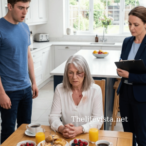 My son hit me, I kept quiet. The next morning, I cooked a sumptuous feast. He went downstairs, saw the lace tablecloth and cookies, smiled and said: “So, Dad, you finally learned,” but his face changed color as soon as he saw the person sitting at the table…