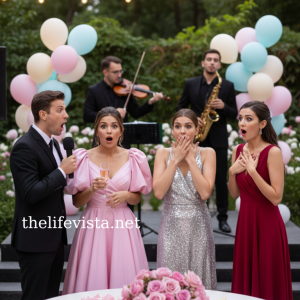 The garden glowed with pastel balloons, the scent of fresh flowers mingling with the hum of laughter. Friends and family gathered, champagne glasses in hand, ready to celebrate...