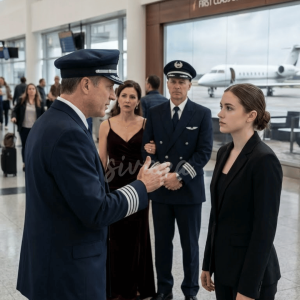 At the airport, my father sneered, “She can’t even afford economy.” My step-sister burst out laughing as they strutted onto their first-class flight. I stayed silent—until a man in uniform approached and said, “Ma’am, your private jet is ready.” The whole terminal fell silent.