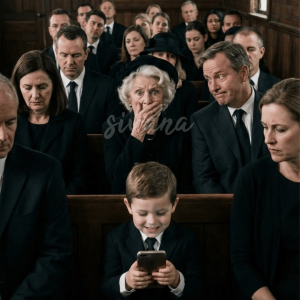 At my husband’s funeral, his mother sneered, “At least he died before enduring any more of her shame.” The relatives murmured their agreement. Then my 8-year-old son stood up, clutching his father’s phone. “Grandma,” he said calmly, “should I show everyone what Dad recorded about you last week?” Her face instantly drained of color.