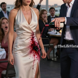 At my sister’s engagement party, her fiance deliberately spilled red wine on my dress. Not a splash, not an accident. He stood in front of me, tipped his glass, and poured until my only decent dress was soaked. I felt the cold liquid hit my skin before the stain even registered. Then my sister started laughing, and the rest followed. Brandon leaned in close enough for me to smell the expensive scotch he hadn’t paid for. Look at that, he said loud enough for the crowd. You finally have some color in your life, Bri. I…