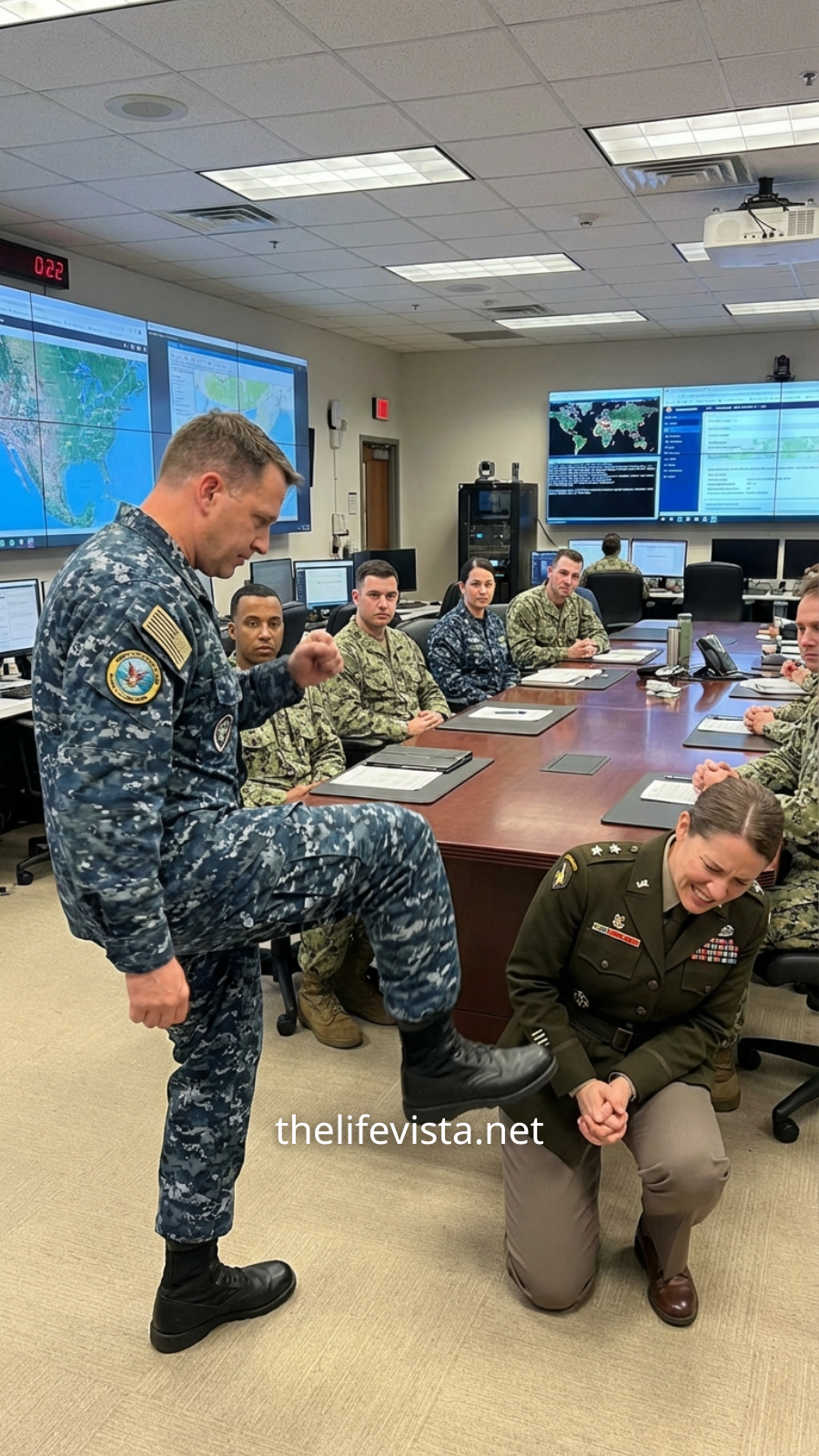 Five generals stood around the table like it was poker night, voices overlapping. At the far edge of the room, half-shadowed beside a steel door, stood a woman whom most of them hadn’t even noticed.