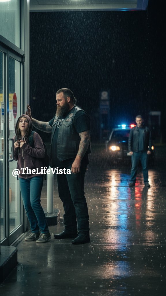 The girl’s voice shook as she ran straight toward the biker standing beside his motorcycle at the gas station. She didn’t slow down. She didn’t hesitate. She looked like someone who had already run out of options.