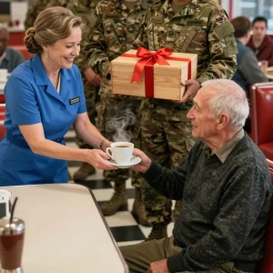 THE SHADOW IN BOOTH SEVEN: She Poured His Coffee for a Thousand Mornings, But the Day Six Marines Stepped Through Her Diner Door in Full Dress Blues, the Truth About the “Quiet Ghost” in the Back Corner Split the Town Wide Open