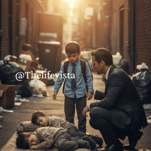 BOY SHOCKS BILLIONAIRE… “Father, those two kids sleeping in the trash look just like me,” said Pedro, pointing to the little ones curled up together on an old mattress on the sidewalk.
