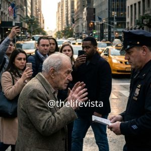On a busy street, a trembling elderly man was publicly humiliated by a uniformed official who told him to “know his place.” Most people only slowed down to watch. But when a quiet, well-dressed stranger stepped forward and whispered something, the entire situation changed instantly.