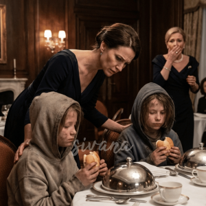 In the heart of the upscale restaurant, two ragged little boys cautiously approached the wealthy woman’s table. One of them nervously asked, “Excuse me, ma’am… could we have some leftover food, please?” She looked up, her breath catching in her chest. The resemblance was undeniable—those eyes, that nose—they were identical to the two sons she had been desperately searching for all these years. Her voice shook as she whispered, “Who… are you? Why do you look so much like their mother?” The twins exchanged a glance, and their response slowly revealed a heartbreaking truth…