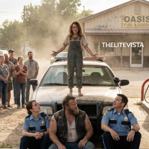 A small girl climbed onto the hood of a police car, arms stretched wide as if to shield a handcuffed biker, shouting that something was wrong while officers...