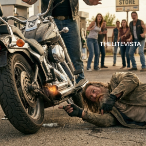 The homeless man dropped to the ground beneath a biker’s rear wheel just as the engine roared to life, and for a split second, it looked like he...